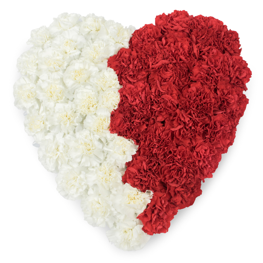 Presenting our Graceful Mixed Carnations Heart Flower Arrangement, a perfect blend of beauty and emotion. This elegant bouquet features a mix of white and red carnations, thoughtfully arranged into a heart shape to symbolize love and grace.